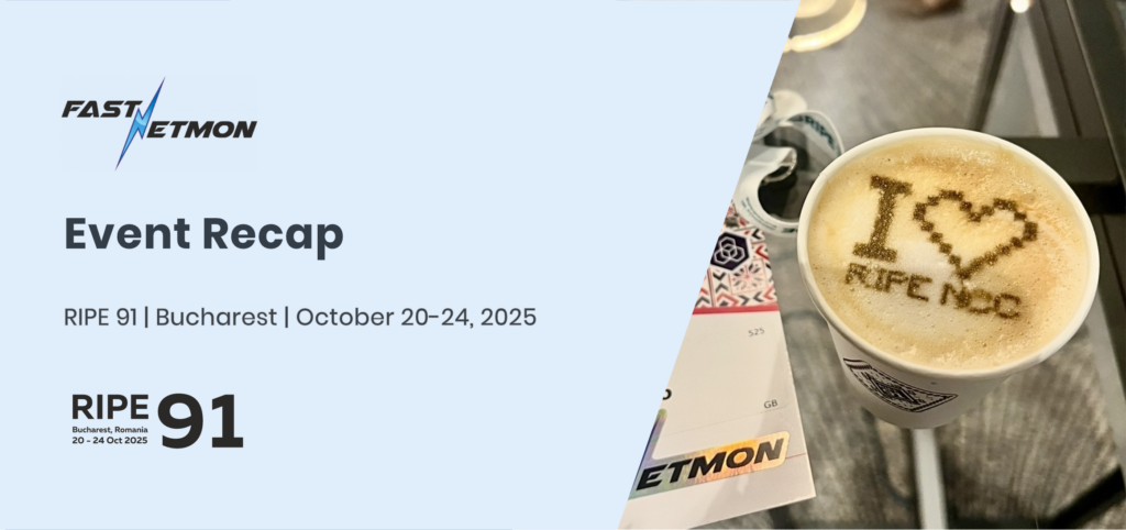FastNetMon was there in full force — us three team members on site taking notes, talking shop, and drinking way too much coffee. It was my first RIPE meeting, so I went in with equal parts curiosity and wide-eyed wonder. Spoiler: it did not disappoint. Here’s what went down.