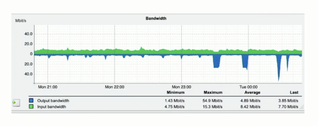Stavros and the team quickly realised: this wasn’t a typical volumetric DDoS attack. Very modest traffic volumes of a few Mbps caused cascading failures in the admin network that ended up in sudden disruption of office connectivity, leaving the entire team without access to internal and external resources for several minutes at a time.