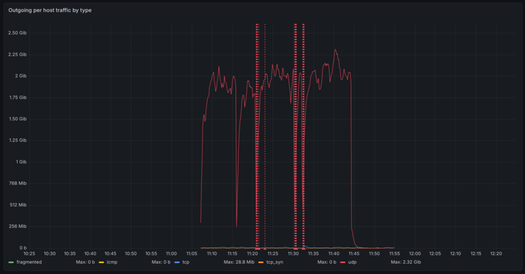While some UDP/443 traffic is expected due to QUIC-based applications, these upload-heavy, synchronised patterns deviate sharply from normal user behaviour.