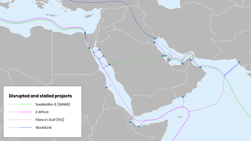 In this article, we’ve explored how connectivity across the Gulf is built on a combination of submarine and terrestrial systems — from the tightly clustered cable routes in the Strait of Hormuz to the Red Sea corridor and overland fibre paths that provide alternative routing options. We’ve also looked at how several major projects intended to expand capacity and improve resilience are now on hold, delaying much-needed diversification of these routes.