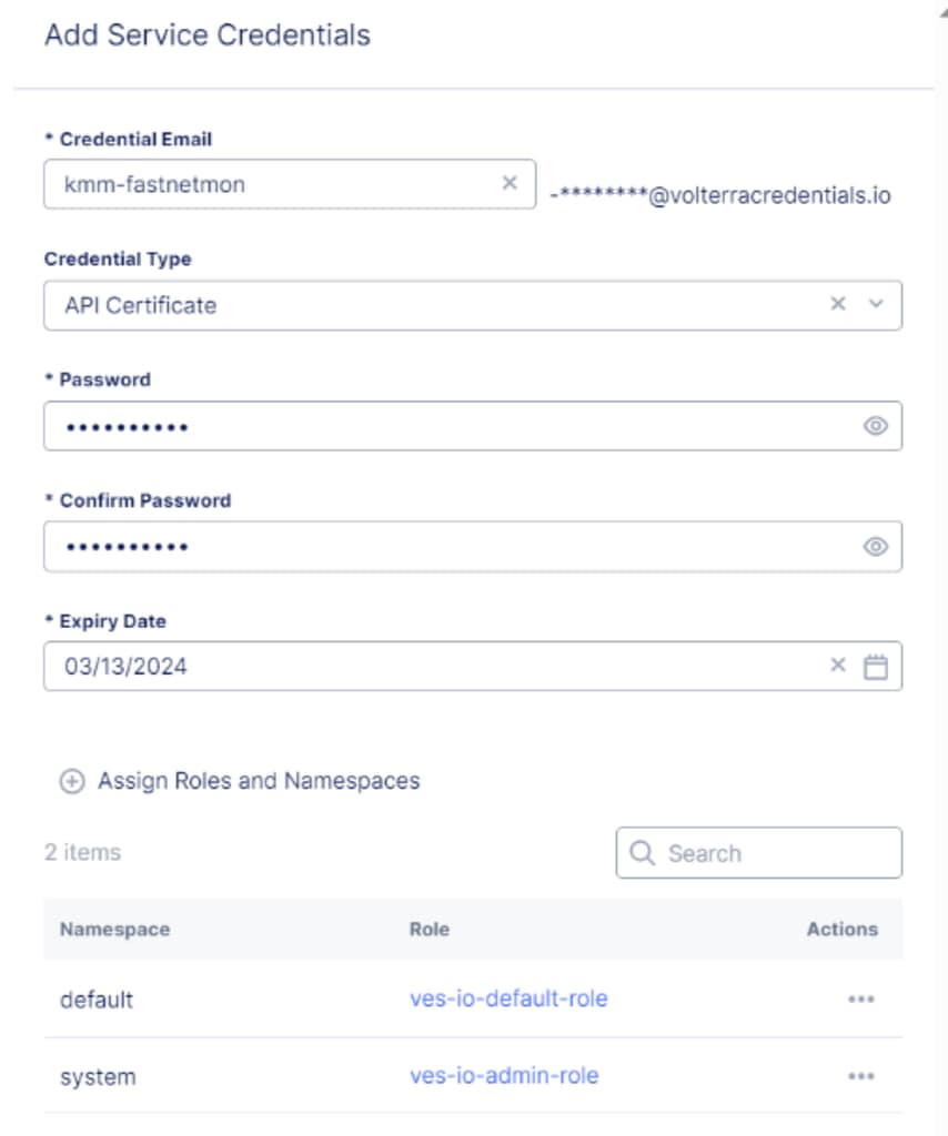 Then click on "Assign Roles and Namespace" and provide the following information:
